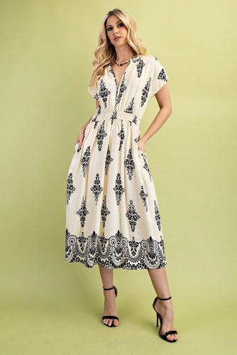 Printed V-Neck Midi Dress